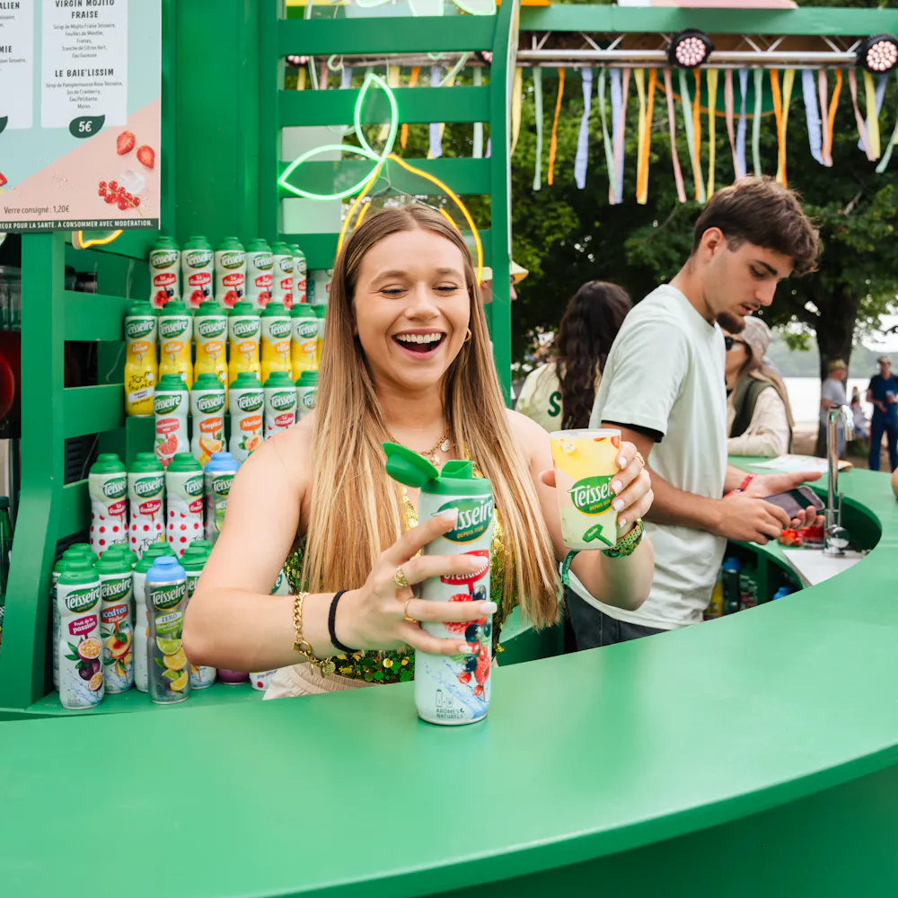 Le brief : Teisseire souhaitait marquer sa présence dans les festivals d'été en créant une expérience engageante et rafraîchissante, avec l'objectif de séduire un public jeune et familial tout en mettant en avant la convivialité et le partage, éléments phares de la marque.