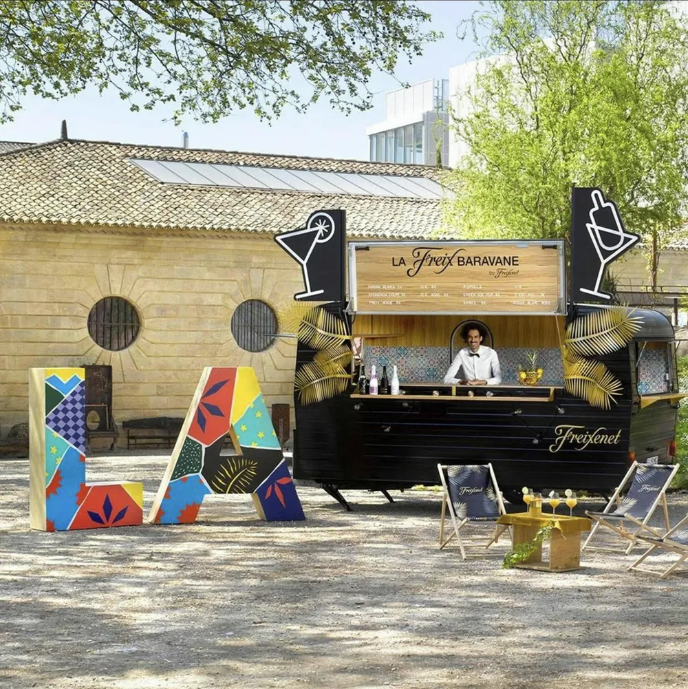 Notre idée : Véritable bar itinérant, la caravane Freixenet a sillonné les routes françaises et s’est installée dans les plus beaux festivals et bars/restaurants. Entre Pete The Monkey , le Bon Air et Marvellous Island, la Freix Baravane s’est autorisée quelques détours et a posé ses valises dans des bars tels que le Faust, La Base, Jo & Joe…