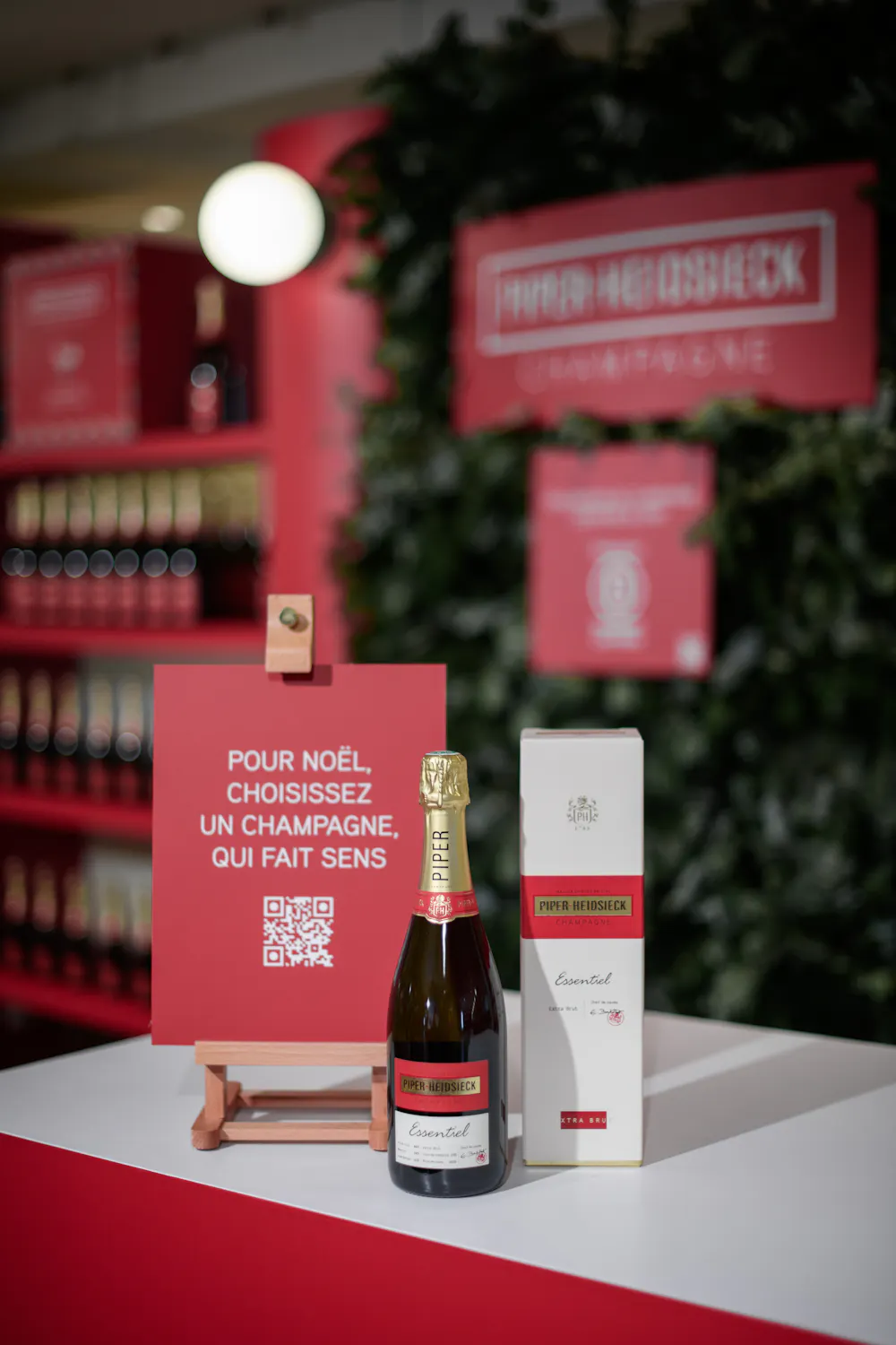 Du 14 décembre au 2 janvier, la maison de champagne s'est installée au 6ème étage des Galeries Lafayette Haussmann à Paris pour célébrer cette période festive. Halloween Agency a conçu un pop-up premium, élégant et végétalisé, en parfaite harmonie avec la nouvelle plateforme de communication de Piper-Heidsieck, "Twist the Script", ainsi que son engagement B Corp. Pour l'occasion, une édition spéciale de la cuvée brut a été créée en l'honneur des 130 ans des Galeries Lafayette, accompagnée d'animations exclusives de personnalisation des bouteilles par des calligraphes les 14, 20 et 21 décembre.