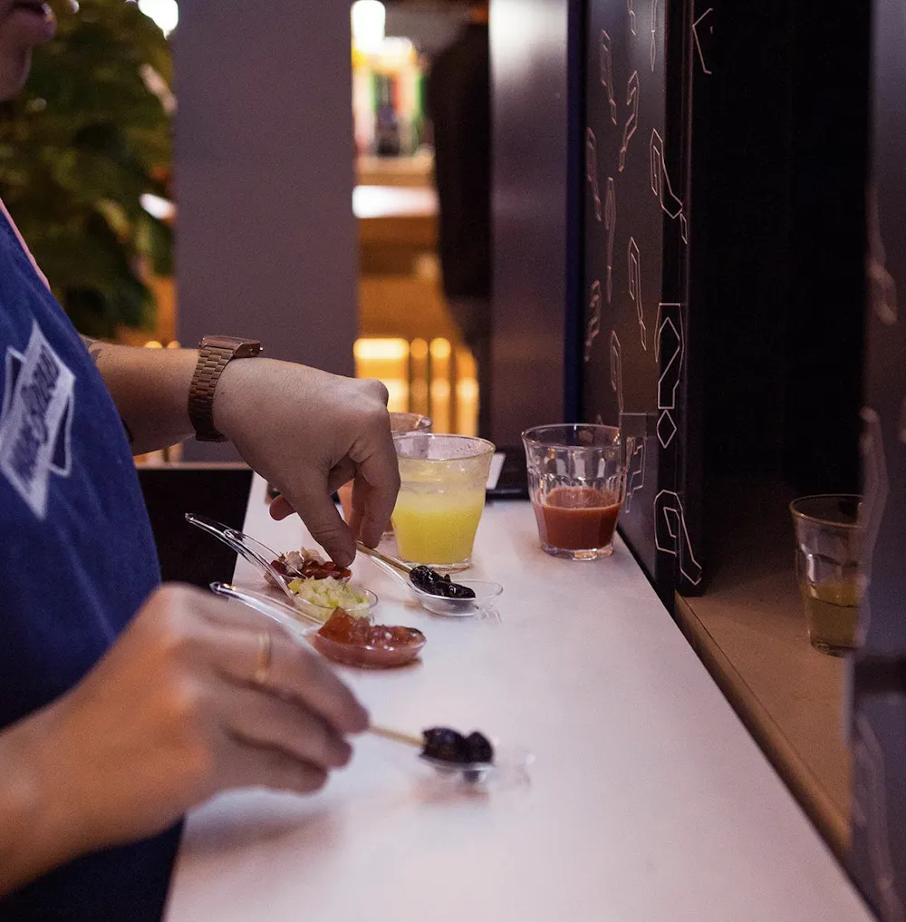 La deuxième partie qui est le retour à la lumière du lieu pour partager l’expérience et tenter de retrouver les recettes des cocktails et food parking dégusté à l’aveugle. Les consommateurs peuvent en suite challenger le mixologue en lui demandant de leur préparer le cocktail Marie brizard qui leur correspond : selon leurs goûts, l’humeur du moment, etc..